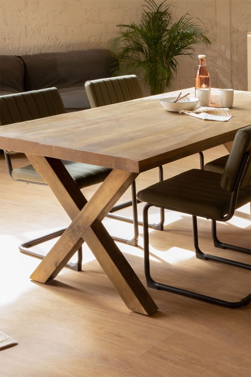 Fabricada con madera de mango reciclada, nuestra mesa Quora es más que un mueble; es una declaración de compromiso con la sostenibilidad y la belleza natural. Con unas generosas dimensiones de 190×90 cm, esta mesa es ideal para reuniones familiares y encuentros con amigos, ofreciendo espacio para hasta 8 comensales.