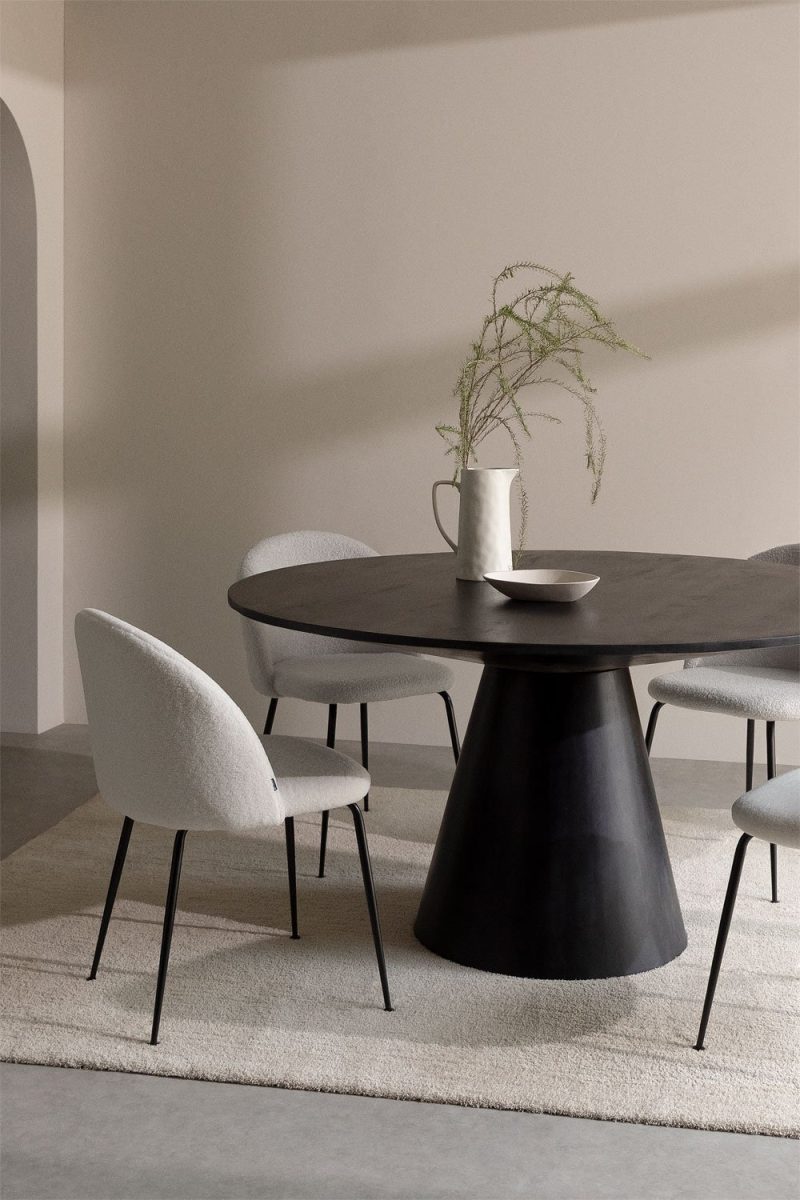 Con dimensiones perfectas para acomodar a 6 comensales con comodidad, esta mesa redonda fomenta un contacto visual óptimo y una fluidez inigualable en tus reuniones. La original pata en forma de cono añade un toque de exclusividad, convirtiendo a Decloe en el foco de atención. ¡No dejes pasar la oportunidad de hacerla tuya y sorprender a tus invitados!